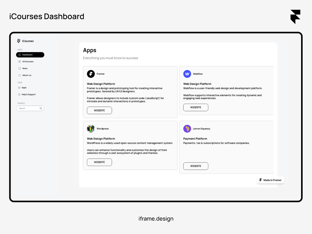 Experience the future of e-learning with iCourses Dashboard made in Framer! 🚀