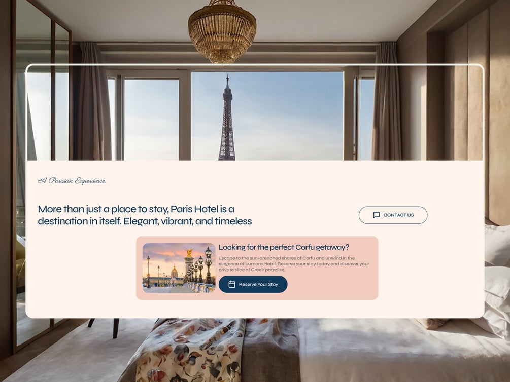 Build your hotel website faster with the Paris Hotel Template for Framer. Enjoy no-code design, responsive layouts and built-in SEO. Perfect for boutique and city hotels that want a professional online presence.